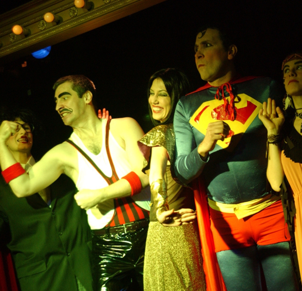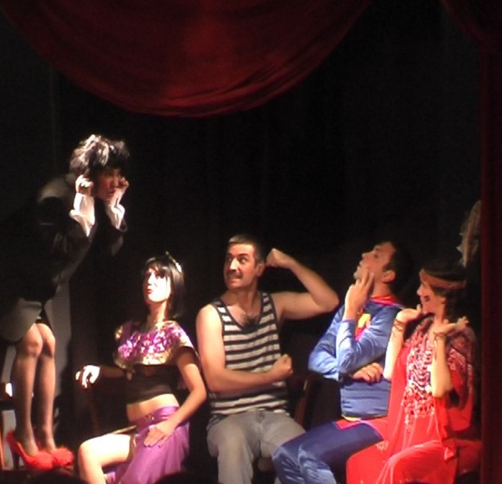 Göbekli bir süpermen, kendini beğenmiş bir Kleopatra, eylemci bir kızılderili, aşırı rasyonel bir akademisyen ve 80’lerde kalmış bir bıçkın delikanlı, bol ışıklı ve kendilerine küçük gelen bir sahnede kendileri için Bayan Y’nin yazdığı, Bayan P’nin yönettiği metni playback olarak oynarlar…